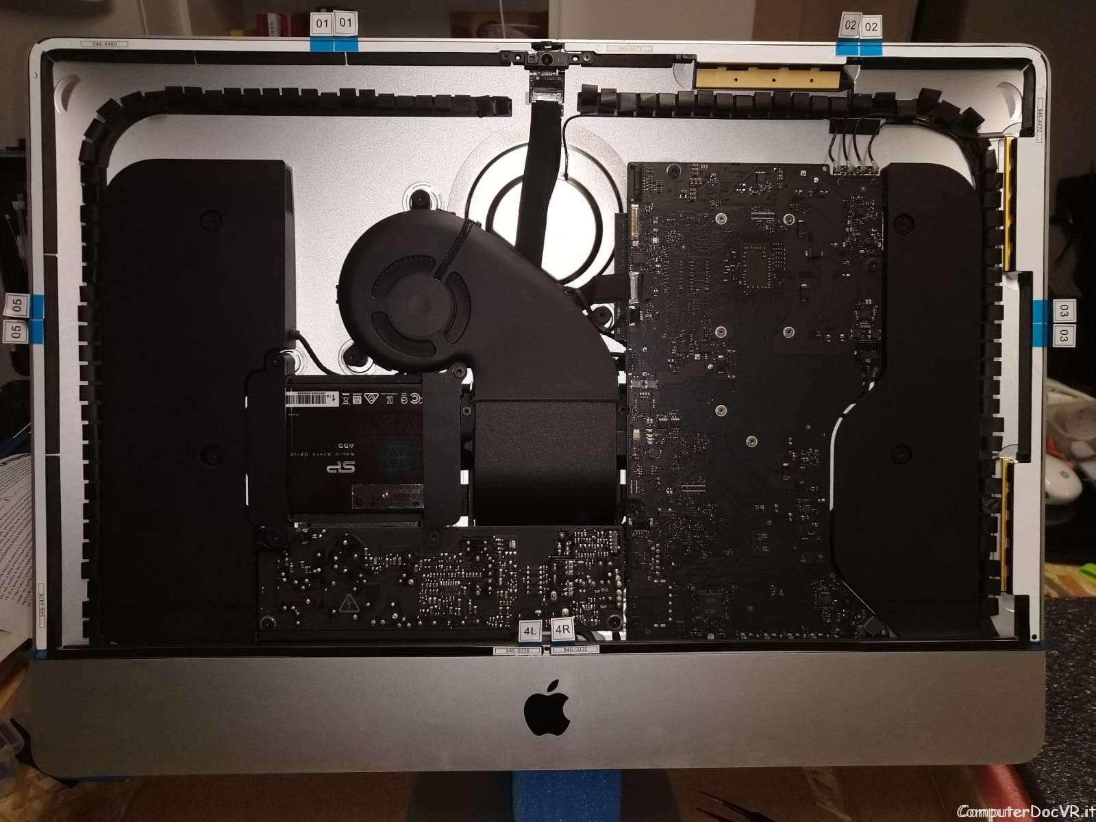 Lo smontaggio e l’incollaggio dello schermo iMac slim sui modelli dal 2012 al 2015 viene fatto con strisce adesive professionali (diffidate da riparatori improvvisati che possono danneggiarlo).